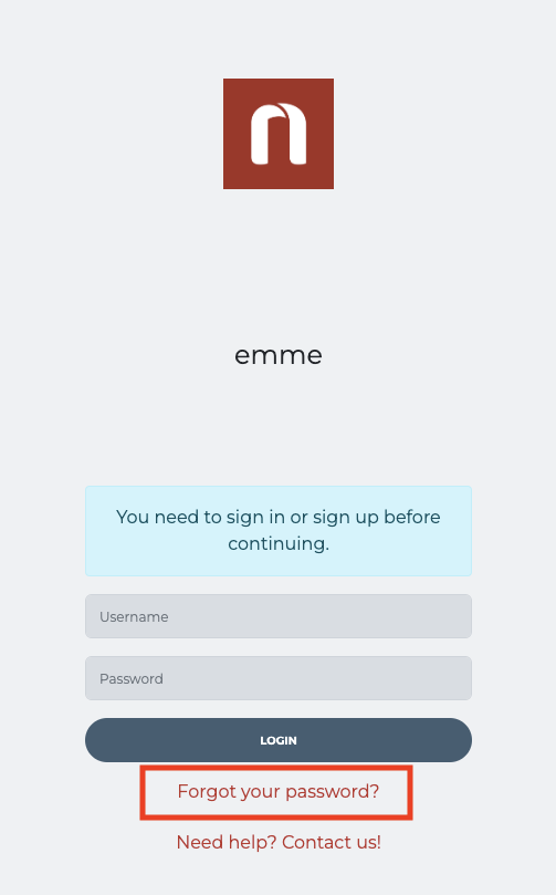 First confirm you have entered the correct username. Generally, when emme accounts are created the username becomes everything before the ‘@’ in your email.